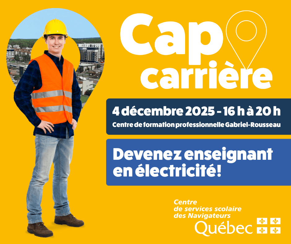 Le centre de formation professionnelle Gabriel-Rousseau et le Centre de services scolaire des Navigateurs vous invitent à l’événement de recrutement de personnel enseignant pour le DEP Électricité!